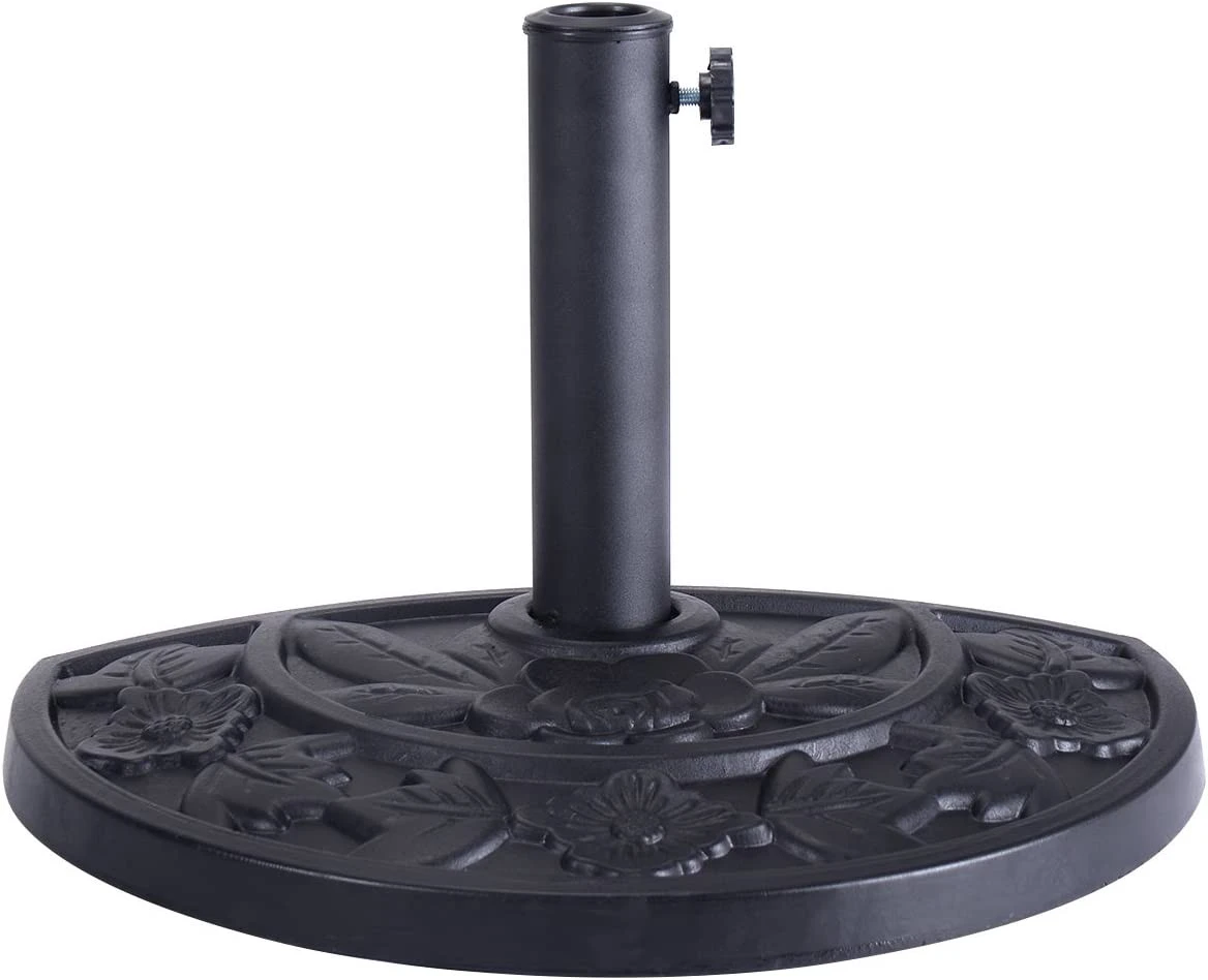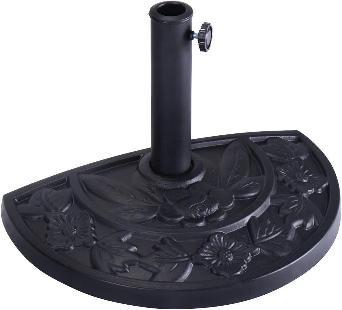 Der Sonnenschirmständer ist aus strapazierfähigem und pflegeleichtem Material, kann Ihren Sonnenschirm stabil halten. Dieser halbrunde Sonnenschirmständer ist ein ideale Lösung für kleine Terrassen oder Balkone. Durch das Blumenmuster ist der Sonnenschirmständer ein echter Hingucker.