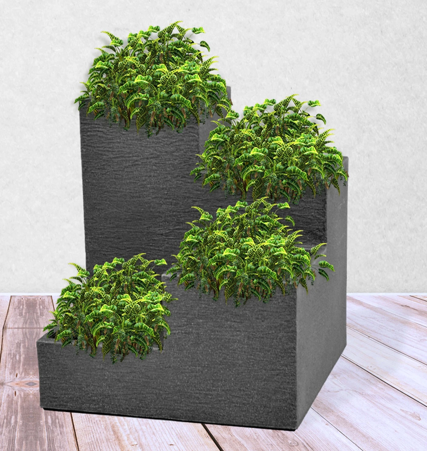 Quadratischer Pflanzkübel aus wetterfestem Kunststoff mit insgesamt 4 Öffnungen zum Bepflanzen. Für den Innen- und Außenbereich geeignet.