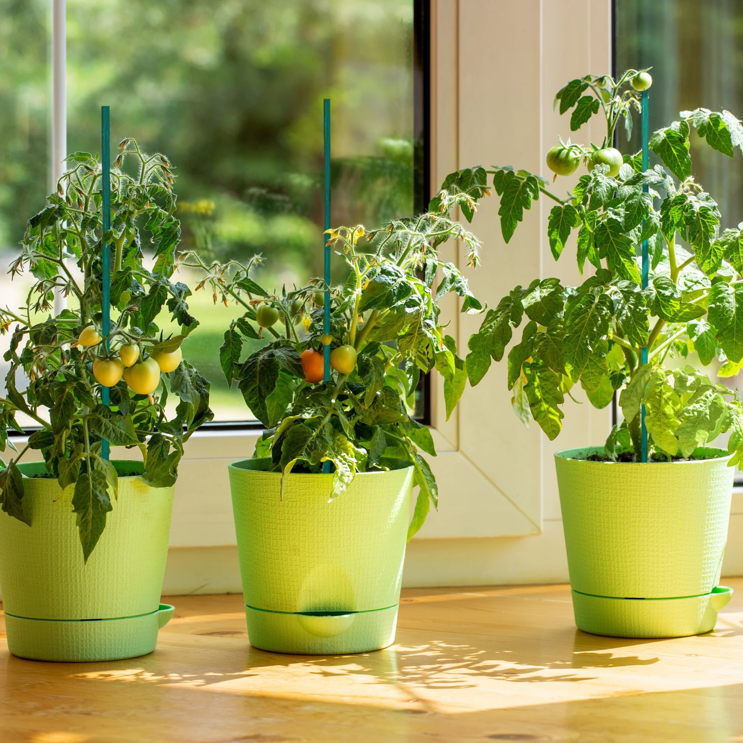 – Grüne Tomatenrankhilfe einfach in den Boden stecken