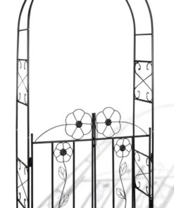 Hergestellt aus bestäntigem Metall bietet dieser wetterfeste Gartenbogen mit Tor einen festen Halt für Ihre Rankpflanzen und Rosengewächse.